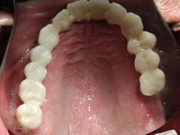 The post-op course was uneventful with one exception. The implant at #15 had a very low insertion torque at time of surgery and was not included in the provisional. It never integrated and was removed several weeks ago.