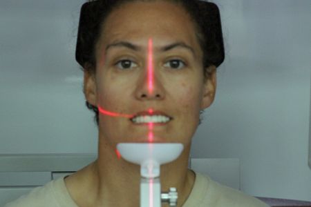 Before surgery begins, Dr. Gibney takes a CT scan of Cristina wearing a scanned appliance.