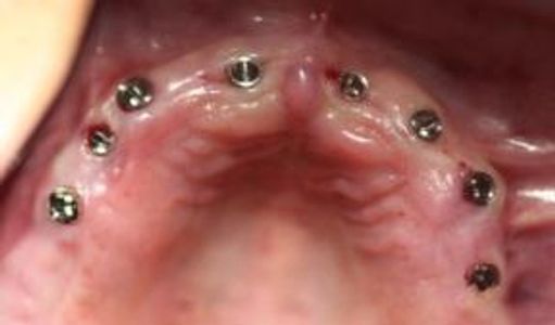 Darryl had 8 implants placed on the upper. Before the 24 Hour Teeth concept had materialized, Dr. Gibney had placed implants on Darryl's lower.
