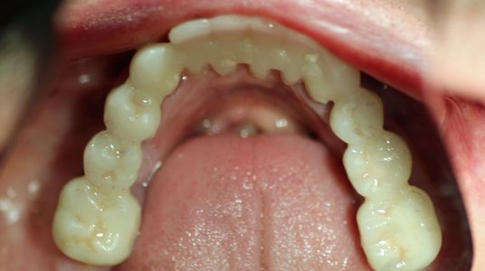 Ralph has had 5 implants placed on top and 2 implants placed on the bottom.