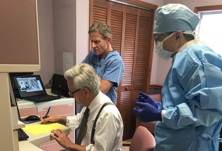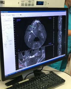 While Ralph is prepped for surgery, Dr. Gibney reviews the scanned images and makes his plan for surgery.
