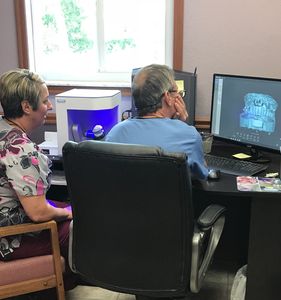 Now that Ralph is out of surgery and home healing, Dr. Gibney scans the impressions into his computer system.